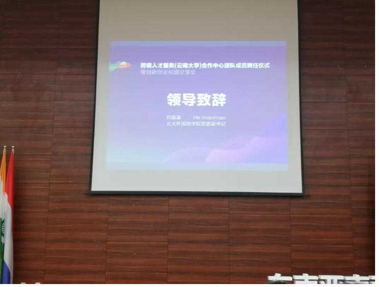 跨境人才服务(云南大学)合作中心团队成员聘书颁发仪式暨创新创业主题分享会于4月1日晚七点,在外国语学院报告厅开展。