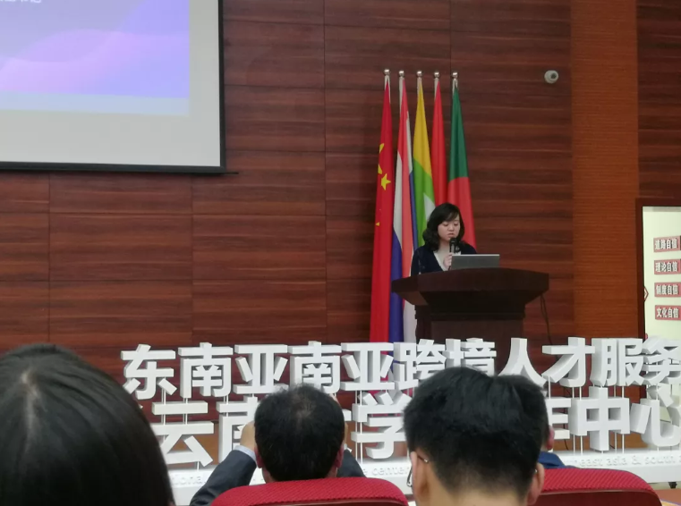 第一项议程是由何淼淼副书记上台致词。她谈到东南亚南亚跨境人才服务(云南大学)合作中心落地于外国语学院,双方将在联合人才培养方案,签署实习实训就业服务协议,实现高校在东南亚南亚跨境人才培养与企业人才需求等方面搭建一站式的服务平台,并期待东南亚南亚跨境人才服务(云南大学)合作中心有着更美好的发展前景。