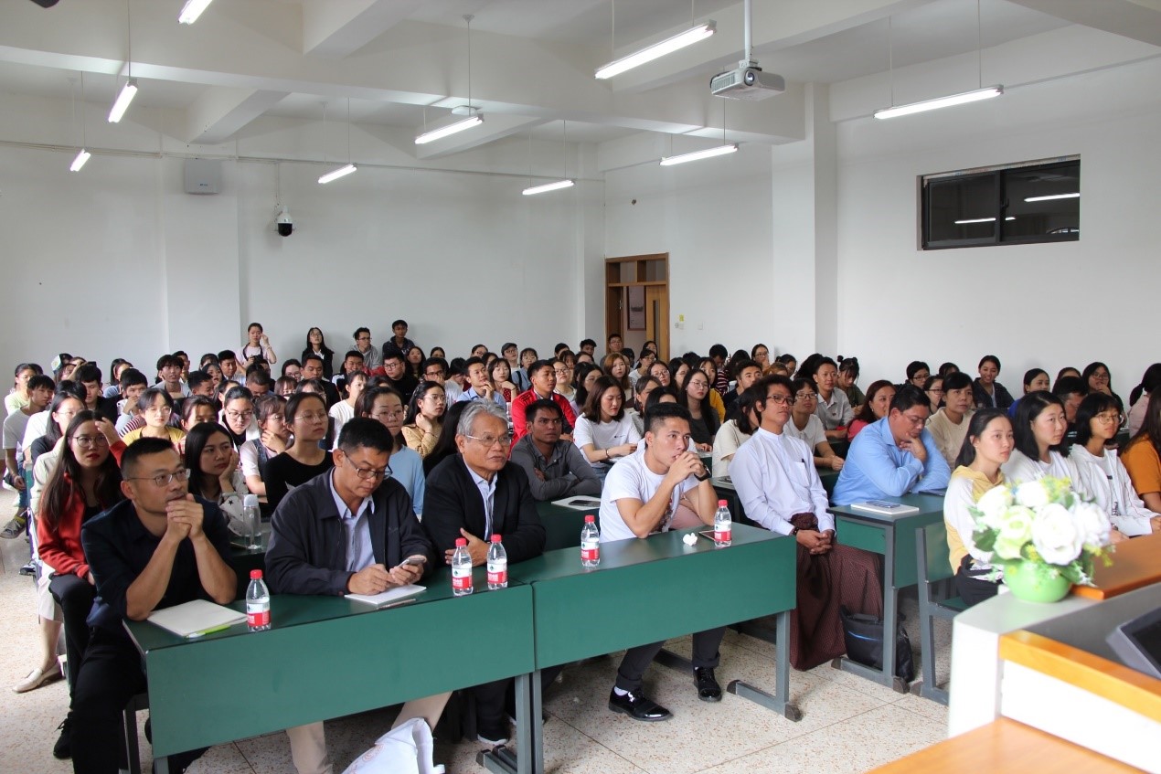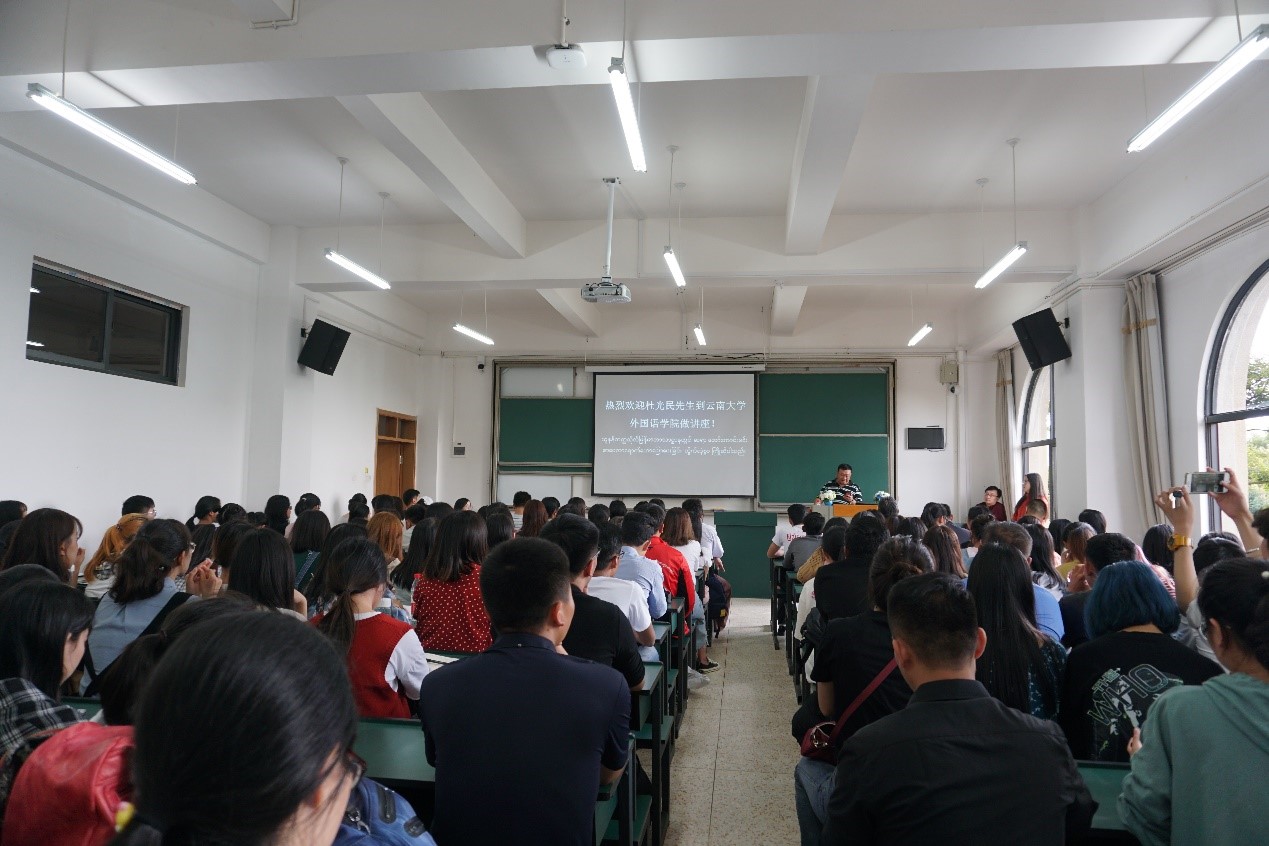 2019年9月18日,缅甸著名翻译家杜光民先生受邀到外国语学院为缅甸语系全体师生带来了一场精彩的中缅文学作品翻译体会与经验交流会。本次讲座由外国语学院骆洪副院长主持,缅甸语系全体师生、缅甸研究院部分老师、缅甸民盟青年骨干交流研修班的学员及缅甸留学生参加了此次交流会。