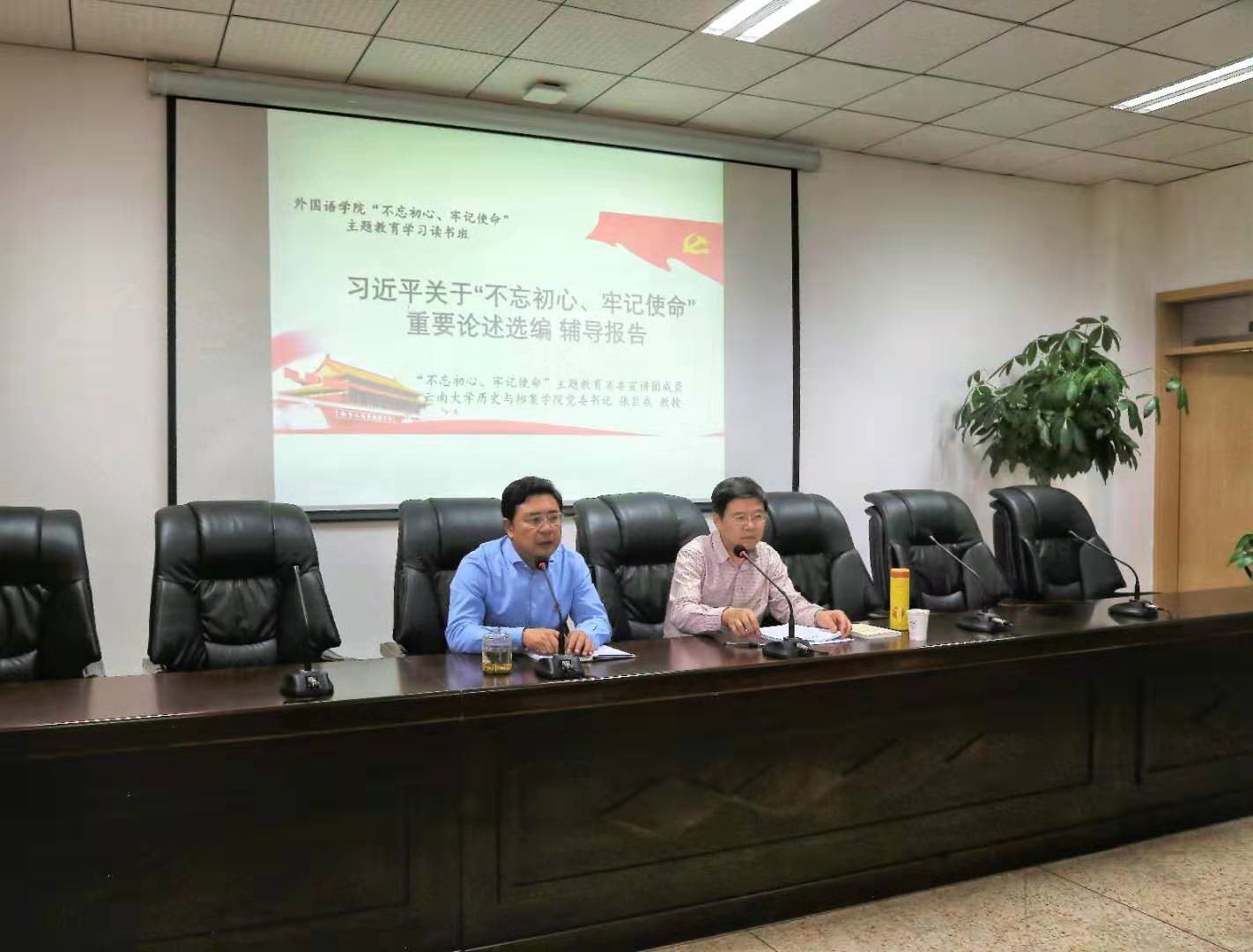 此次辅导由“不忘初心、牢记使命”主题教育省委宣讲团成员、云南大学历史与档案学院党委书记张巨成教授主讲,外国语学院全体教工党员及在校学生党员参加。