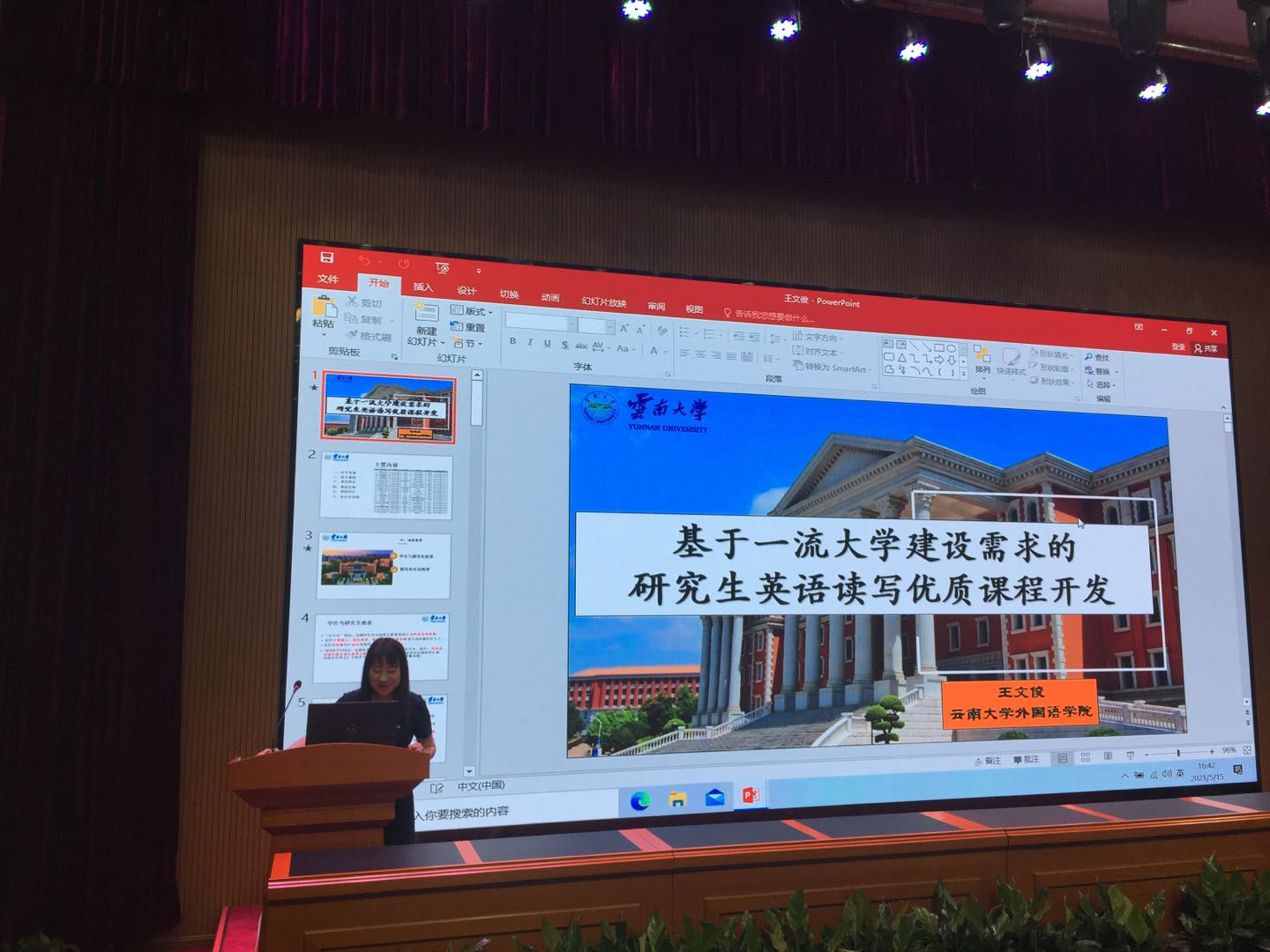 环球首页(中国)网页版研究生公共英语教研室主任王文俊副教授应邀参会,并做了题为《基于一流大学建设需求的研究生英语读写优质课程开发》的发言,内容是基于研究生课程建设的需求,结合教学实践,依托基础读写课程,探讨如何在“双一流”大学建设过程中进行英语读写优质课程的开发,其中包括课程目标、课程设计理念、课程在研究生人才培养中的地位和作用、知识构成与能力构成比例、课程讲授模块、课程拟解决问题、采用的教学方法、信息化教学手段的运用以及教学方法的创新与探索等九个方面的内容。