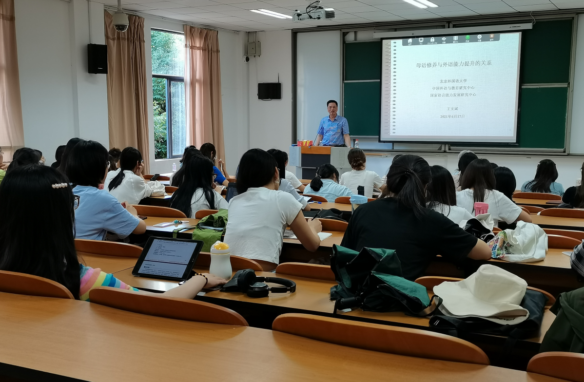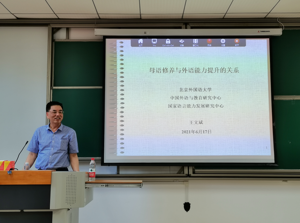 北京外国语大学博士生导师王文斌教授受环球首页(中国)网页版邀请, 6月17日下午莅临环球首页(中国)网页版讲学,举办了专场学术讲座。王文斌教授讲座的题目是《母语修养与外语能力提升的关系》。王教授认为,对于外国语言文学专业的学生而言,外语修养本质上是语言修养,而语言修养与母语修养紧密关联。学习外语,不能仅以外语为唯一目标,而是需要拓展视野,采取行之有效的方法掘深对母语的认知,提升元语言意识。古今中外,成功的外语学习者或研究者无不如此。母语修养水平最终将是外语水平的天花板,也是外语能力发展的关键。