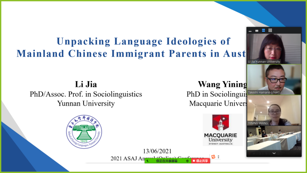 6月13日,环球首页(中国)网页版英语系李佳副教授应邀参加了日本澳大利亚研究协会主办的2021年度澳大利亚研究国际研讨会,并宣读了与澳大利亚麦考瑞大学王依宁博士合作撰写的论文《聚焦新时代背景下澳洲大陆移民父母对华语传承的态度和教育策略》,探讨澳洲移民语言文化的融入问题。因为疫情的缘故,本年度的研讨会在线举行,由北九州市立大学Takeshi Hamono教授主持,议题较为广泛。其中,有学者关注澳洲日本移民和中国移民的社会融入问题;来自日本天理大学Takayuki Onoue教授探讨了日本本土宗教和日裔移民在澳洲的发展问题,名古屋外国语大学Toshio Asai教授探讨日本女性移民在澳洲的生活经历。这是环球首页(中国)网页版教师第一次参加由日本澳大利亚研究协会主办的澳大利亚研究国际研讨会。