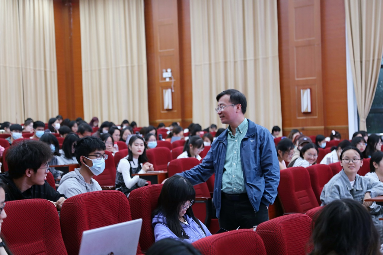 在问答环节,廖院长详细解答了同学们的提问。针对日语专业同学对职业规划的提问,廖院长指出:本科阶段多学一门语言,就会在进入到后期研究时多一个视角,多一种理解的维度。学习一个民族的语言,实际上可以使我们对该民族有更深层次的理解,为深入进行文化、社会、历史等研究打下良好的基础。