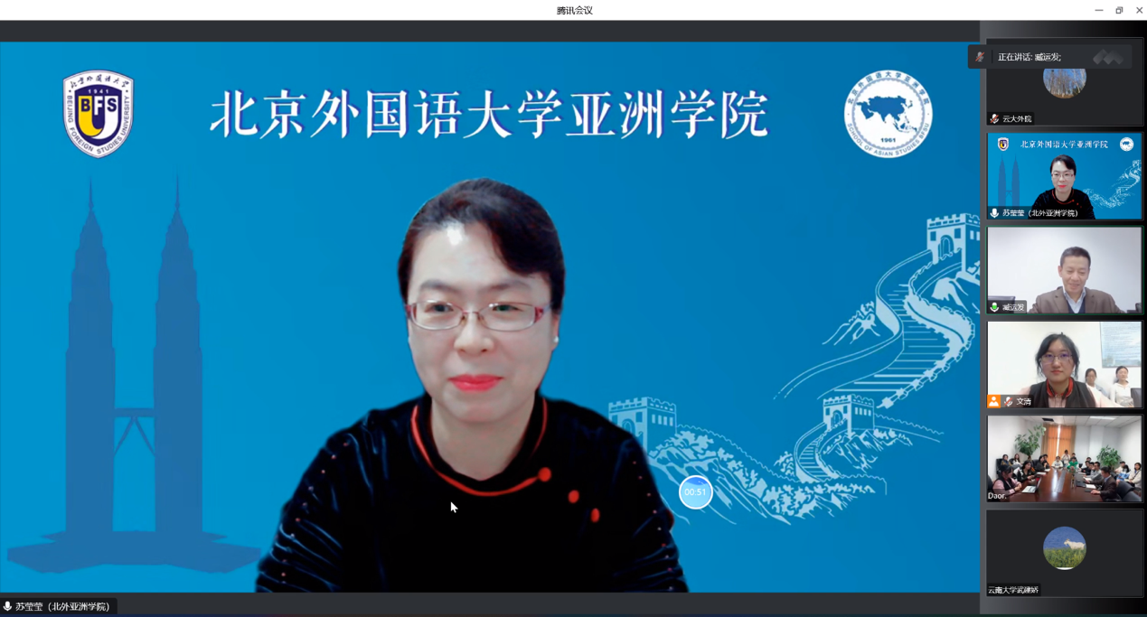 2022年10月26日下午,北京外国语大学亚洲学院院长、中国马来研究中心主任苏莹莹教授以线上方式为环球首页(中国)网页版马来语专业师生做了题为“中国高校马来语专业的建设与发展:‘小语种、大作为'理念之践行”的学术讲座。本次讲座为“云南大学百年校庆外国语言文学文化系列讲座·东南亚语言文化系系列学术讲座”第三场,由环球环球首页(中国)网页版(中国)网页版副院长臧运发教授主持,环球首页(中国)网页版马来语专业师生在外国语学院楼303会议室线下集中参与讲座。