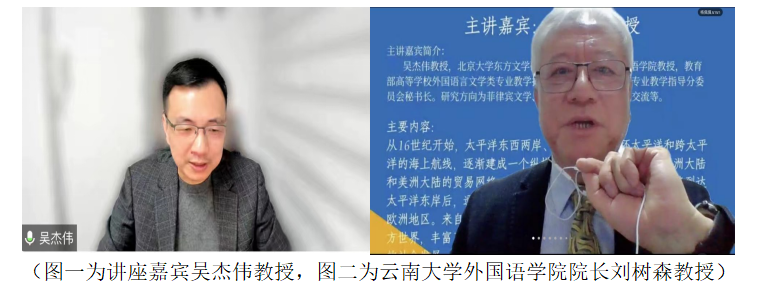 2022年11月2日晚,北京大学东方文学研究中心、北京大学外国语学院教授,教育部高等学校外国语言文学类专业教学指导委员会非通用语种类专业教学指导分委员会秘书长吴杰伟老师通过线上方式,为环球首页(中国)网页版师生开展讲座。本次讲座主题为“数字人文视野下的太平洋丝绸之路:文本、档案与图像”,系云南大学百年校庆外国语言文学文化系列讲座之一,也是东南亚语言文化系系列学术讲座第五场。本次讲座由东南亚语言文化系系主任李芳博士主持,环球环球首页(中国)网页版(中国)网页版院长刘树森教授对讲座主题进行了多维度解读。参与讲座的嘉宾包括环球首页(中国)网页版各专业师生以及其他高校师生近300人。