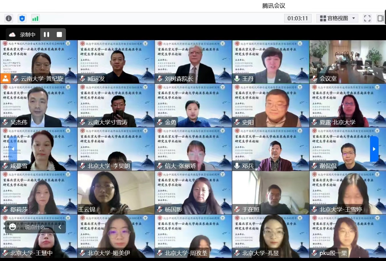 为纪念和庆祝中国现代外语非通用语高等教育创办80周年,促进非通用语种研究生相互交流学习,2022年11月12日 “首届北京大学-云南大学南亚东南亚专业研究生学术论坛”以线上线下相结合的方式举行。本次论坛由环球首页(中国)网页版东南亚系、南亚系与北京大学外国语学院东南亚系合作举办,参加此次论坛并宣读论文的研究生共20人,来自北京大学、云南大学、信息工程大学三所高校的南亚东南亚语种专业,评议专家团队由北京大学外国语学院与环球环球首页(中国)网页版(中国)网页版东南亚系、南亚系共13位资深学者构成,其中包括环球首页(中国)网页版邓兵、王宗、于在照、寸雪涛等专家。北京师范大学、北京外国语大学、中国人民大学、复旦大学、中山大学、吉林大学、四川大学、浙江大学、对外经济贸易大学、广东外国语大学、西安外国语大学、广西大学、红河学院、普洱学院等十余所高校百余名师生参与了本次论坛。