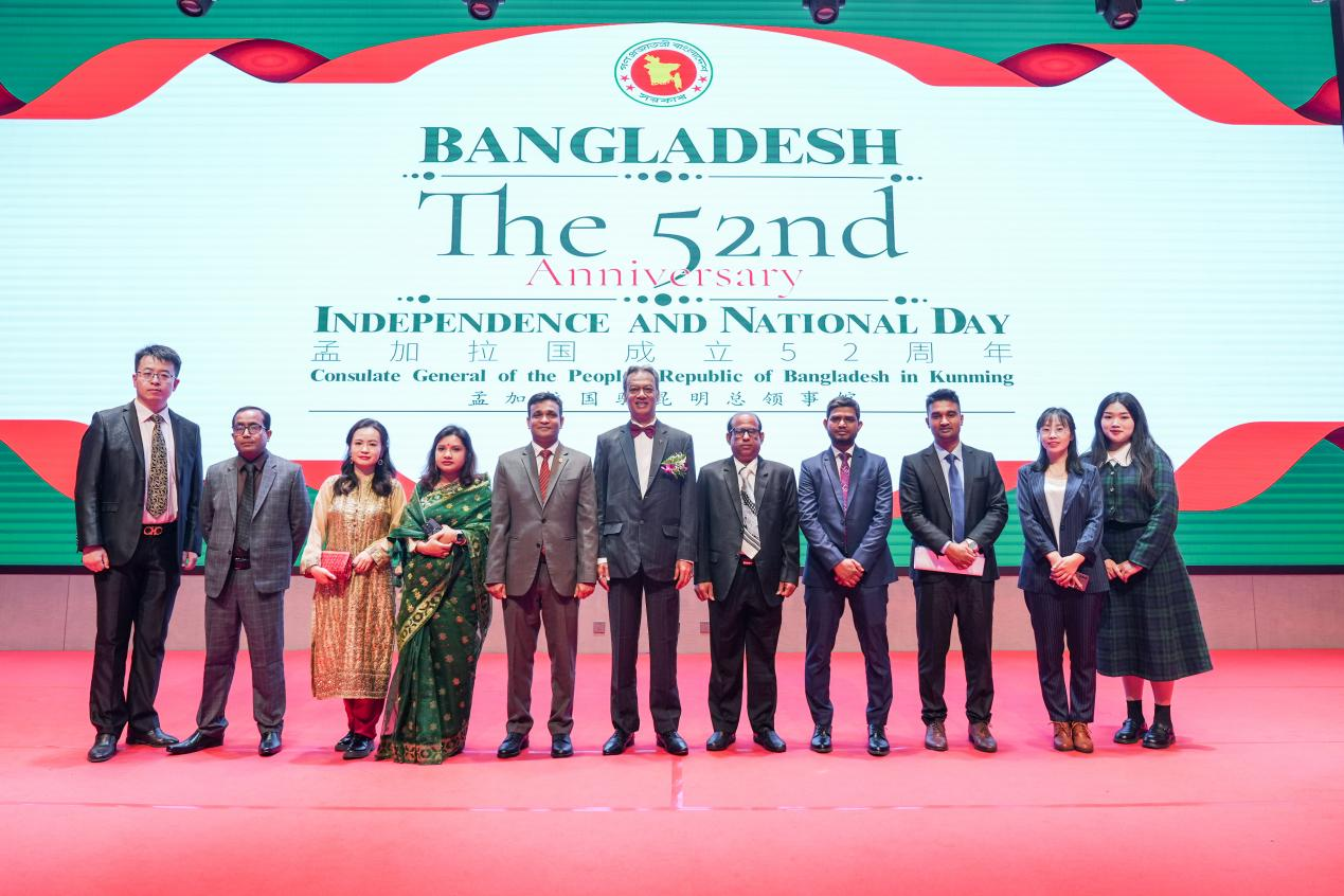 2023年3月26日,环球环球首页(中国)网页版(中国)网页版孟加拉语专业全体师生受孟加拉国驻昆明总领事馆总领事周科一·阿哈德(Zokey Ahad)邀请,参加了于星耀温泉酒店二楼举办的孟加拉国52周年独立日活动。