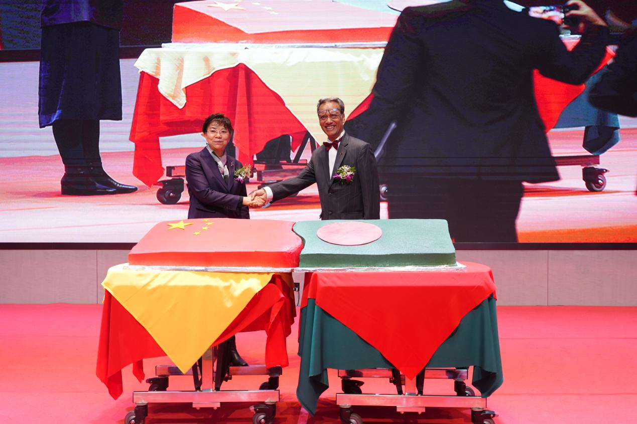 (省人大常委会副主任王树芬与总领事阿哈德进行蛋糕合并仪式)
