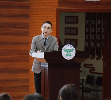 杨丰凯老师为即将参加第九届“互联网+”大学生创新创业大赛的同学们作动员讲话。杨老师表示新时代背景下正需要有文化、有知识、懂创新、会创造、懂时代、有正能量的人,大学生正是最佳人选。这是一个最好的时代,创新者会如鱼得水,创造者将大行其道。他鼓励同学们要培养敢于创造、勇于创新的价值观,并祝愿外国语学院能在第九届“互联网+”大赛中取得更好成绩。