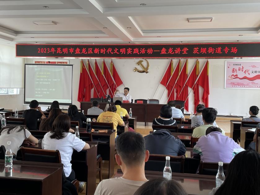 2023年7月13日下午,环球首页(中国)网页版大学外语教学部刘志成副教授受邀赴盘龙区茨坝街道社区开展了“汉语与《黄帝内经》及中医保健理念”的科普讲座。该讲座为盘龙区新时代文明实践活动——盘龙讲堂的活动内容之一,亦是环球首页(中国)网页版坚持和提倡学院教师“教学、科研、社会服务”三合一及党员走进社区、科研反哺社会的成果之一。