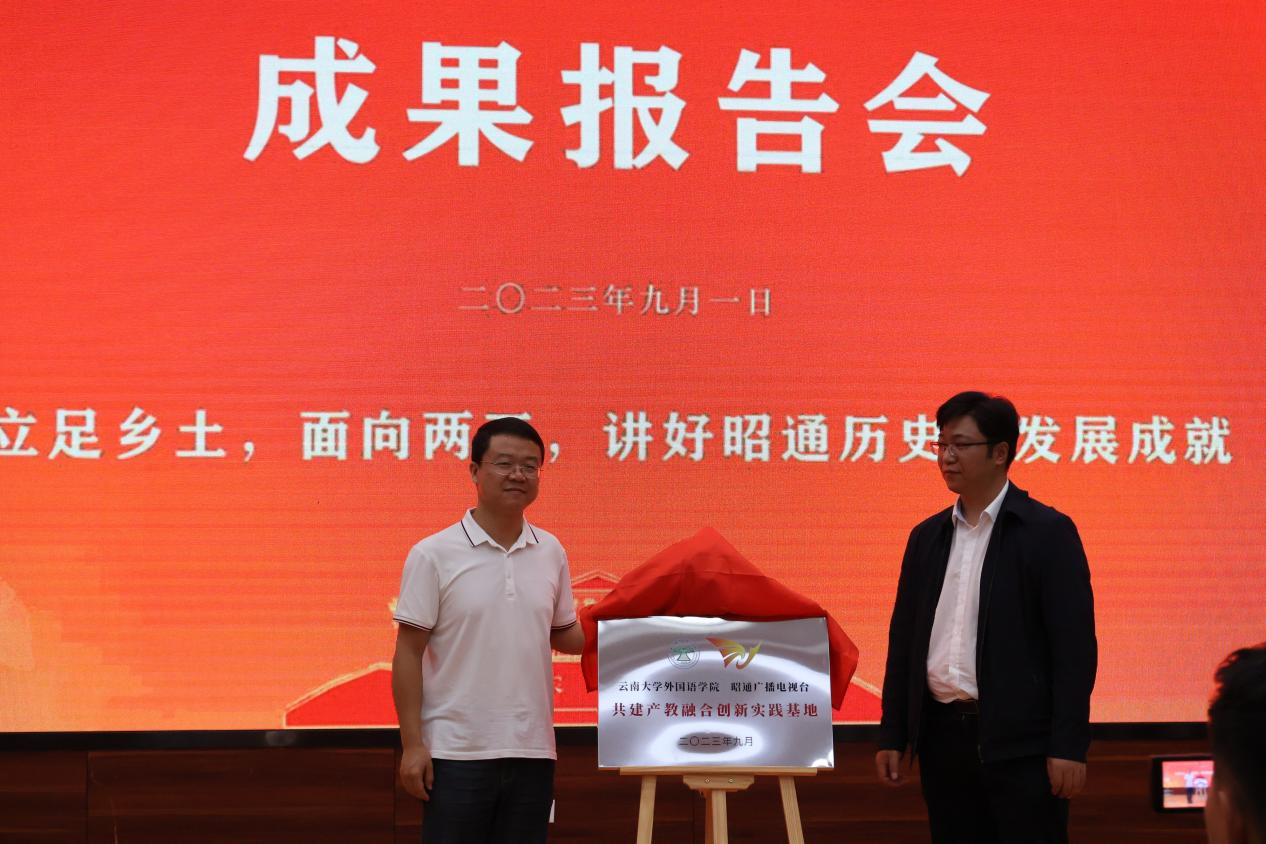 随后,外国语学院副院长王浩和昭通广播电视台副台长曹健共同为“环球环球首页(中国)网页版(中国)网页版·昭通广播电视台--共建产教融合创新实践基地”揭牌。