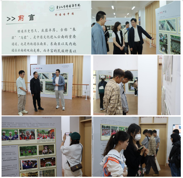 昭通广播电视台的各位领导在外国语学院党委副书记何淼淼老师的陪同下参观了”外语话中国“主题成果展,并围绕本次实践活动进行了交流。