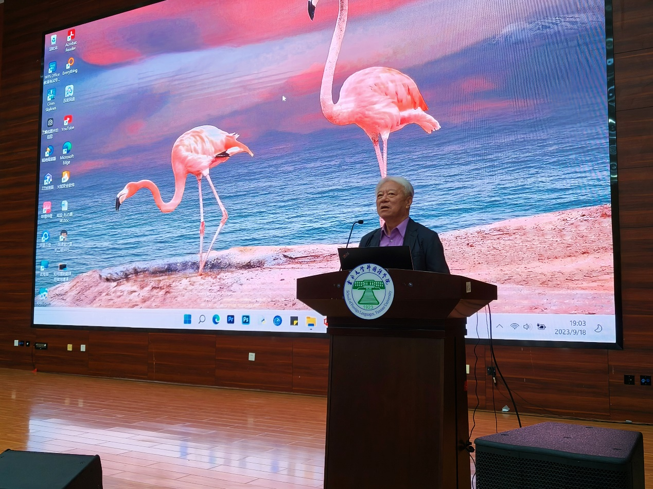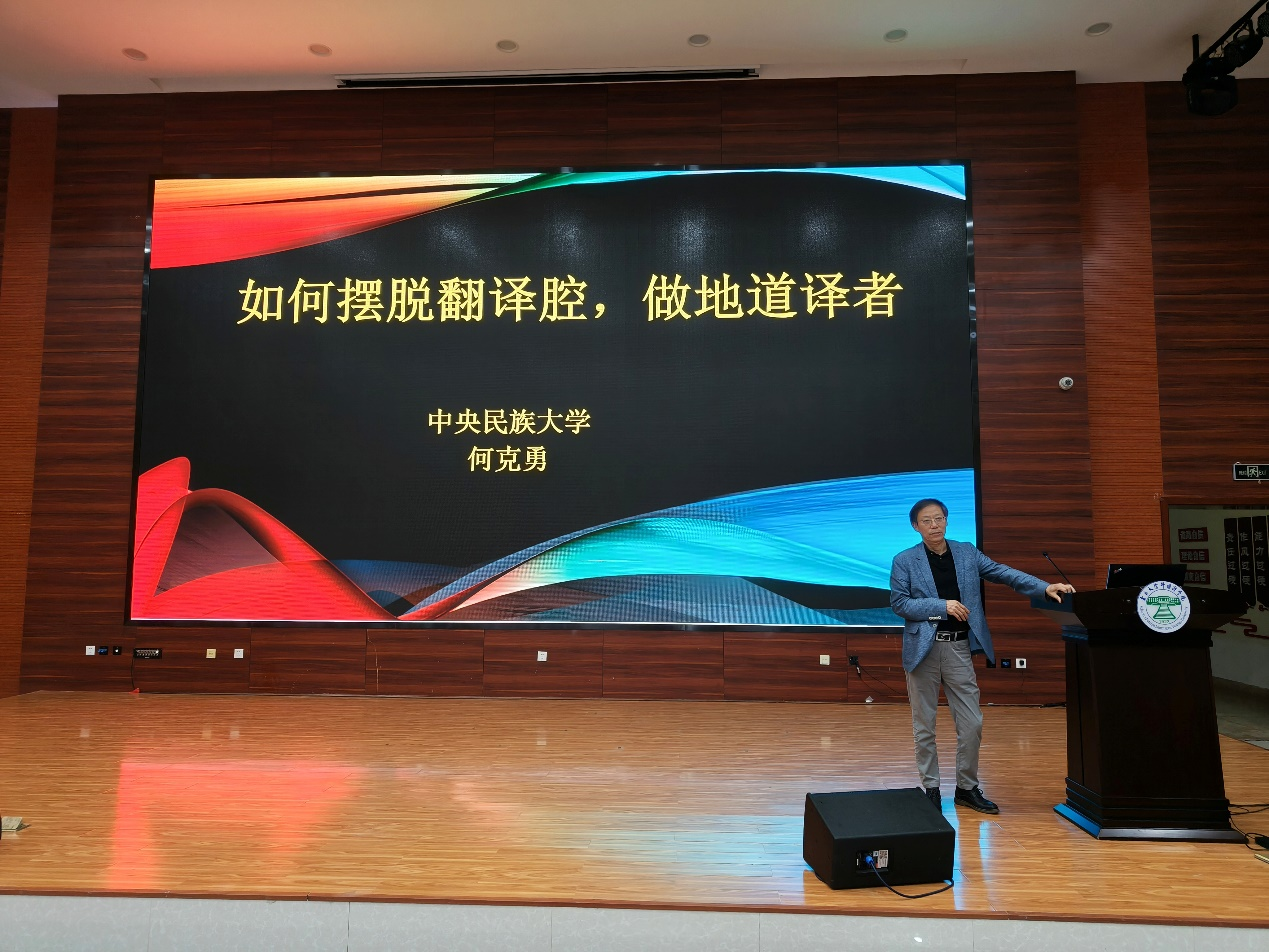 2023年9月18日晚19点,中央民族大学外国语学院翻译系何克勇教授应邀为环球首页(中国)网页版师生做了题目为《如何摆脱翻译腔,做地道译者》的学术讲座。本次讲座在外国语学院一楼报告厅举行,由骆洪副院长主持,刘树森院长进行开场致辞,各专业学生积极参与。