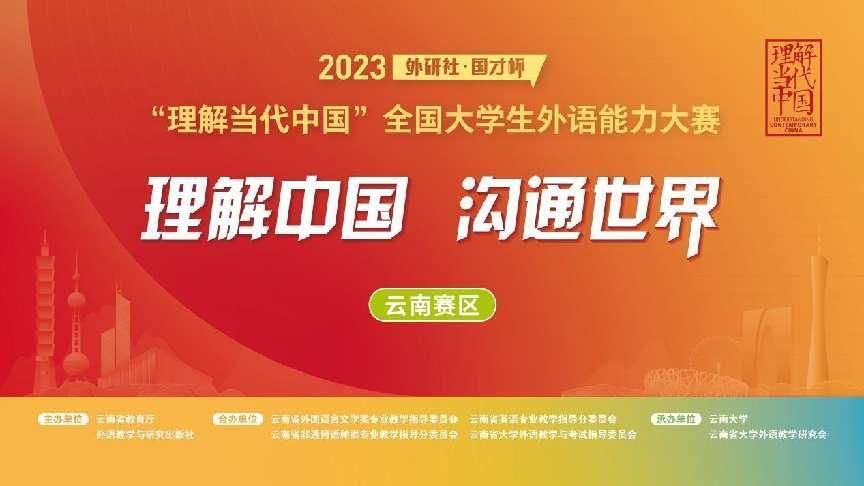 2023“外研社·国才杯”“理解当代中国”全国大学生外语能力大赛由云南省教育厅、外语教学与研究出版社主办,云南省外国语言文学类专业教学指导委员会、云南省英语专业教学指导分委员会、云南省非通用语种类专业教学指导分委员会、云南省大学外语教学与考试指导委员会合办,云南大学、云南省大学外语教学研究会承办。10月28-29日,“英语阅读”“英语写作”“英语笔译”“泰语综合”的云南省复赛以选手线上参赛的形式举行。11月2-3日,“英语演讲”“英语口译”的云南省复赛在环球环球首页(中国)网页版(中国)网页版举行。