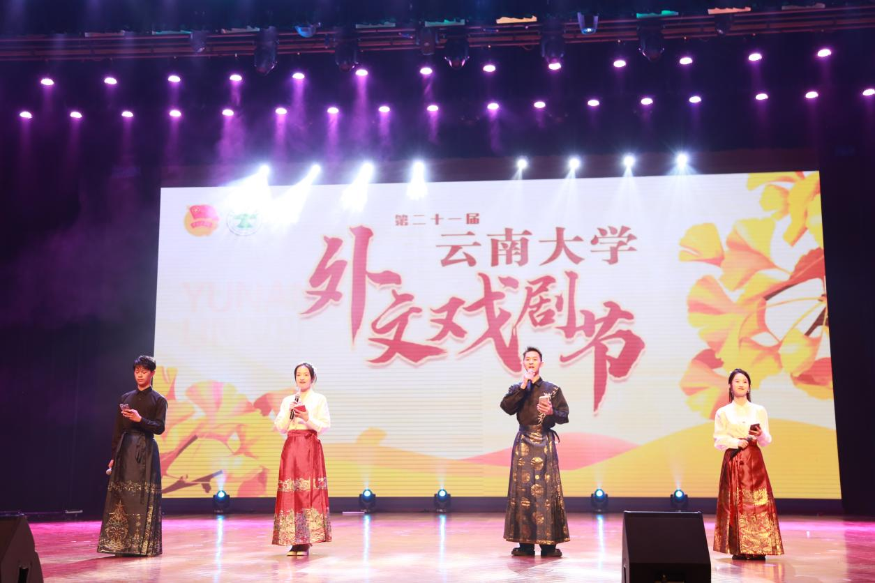 2023年11月10日晚,云南大学第二十一届外文戏剧节狂欢夜在云大学生会堂隆重举行。环球环球首页(中国)网页版(中国)网页版党委书记王益广老师、党委副书记何淼淼老师、云南大学学生艺术团指导教师马梦怡老师、云南大学学生公寓管理中心主任张拥军老师出席晚会。参加本届晚会的还有云南新东方国际教育中心、新东方前途出国(昆明分公司),阳光心霖儿童公社、云南世纪文都教育科技有限公司、云南东润教育集团等院企合作单位,各兄弟学院、各职能部门领导和教师代表、各学院同学们共同观看此次晚会。