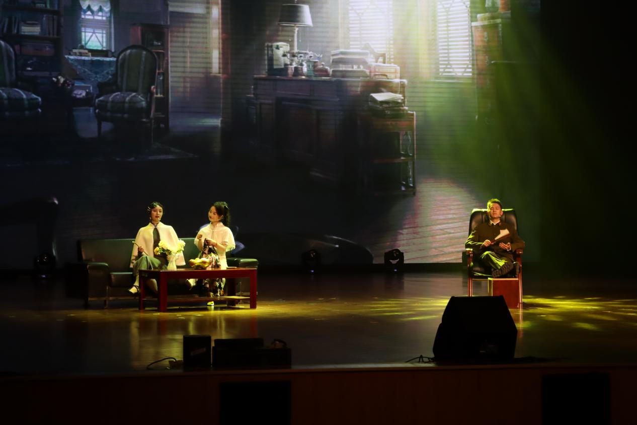 风声:x英勇者无畏,为黎明曙光;革命者献命,为繁花似锦。循着“风声”,我们走进风雨动荡的战争年代。学院林子琪老师带领英语专业同学,用外语聚焦影视经典,通过精湛的演技和深刻的塑造,动人的表演将真挚的感情和坚定的信仰传递至观众心间,完美诠释了红色精神的力量,让观众们潸然泪下,也让我们深切知晓,忠贞与背叛,勇敢与怯懦,生命与死亡,在中国共产党人面前从来不是两难抉择!