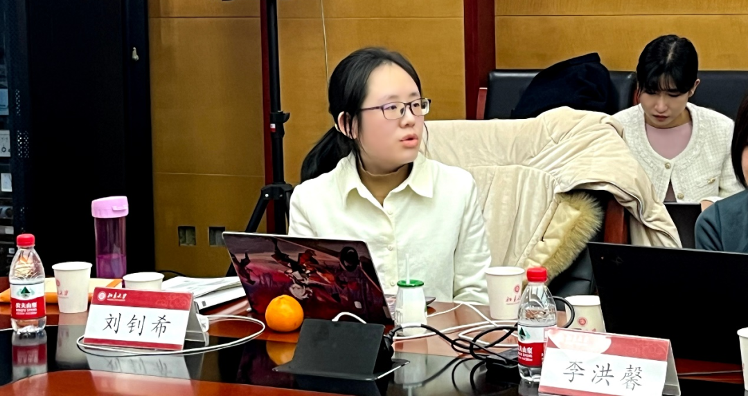 在学生报告环节,语言学方面,明治大学星川睦同学以“‘不安'的近现代语义变化(近現代における「不安」の意味変化)”为题,从日本社会媒体的发展和与“幸福”的对义关系的角度,考察了近现代“不安”一词从“对危险本身的不快感”到“对自己无法把控的未来的不快感”这一含义变化。北京大学李洪馨同学在以“日语程度副词‘ちょっと'和形容词的共现机制考察——从形容词的等级性出发 (形容詞のスケール性から見る日本語程度副詞「ちょっと」と形容詞の共起関係)”为题的报告中,采用程度语义学理论,探究了日语程度副词“ちょっと”和形容词搭配限制的底层因素。
