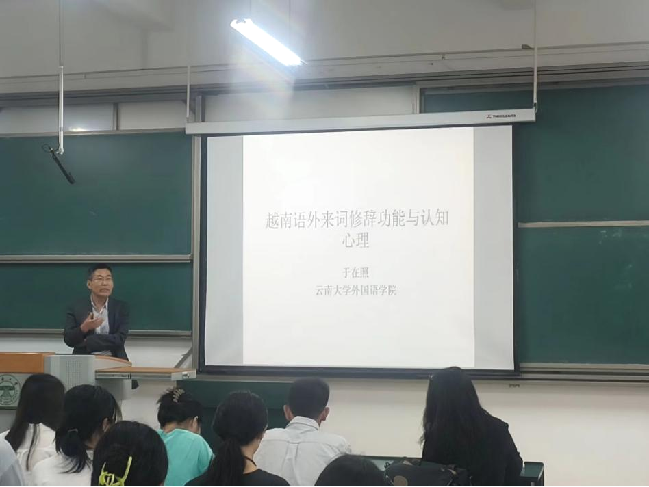 2024年6月27日晚七点,环球环球首页(中国)网页版(中国)网页版越南语专业的于在照教授以“越南语外来词修辞功能与认知心理”为题,为环球首页(中国)网页版东南亚语言文化系的师生带来了一场精彩讲座。此次讲座系2024年云南大学外国语言文学学科创新发展讲座第7场,东南亚语言文化系系列学术讲座第17场,由外国语学院东南亚语言文化系越南语教师张绍菊老师主持。