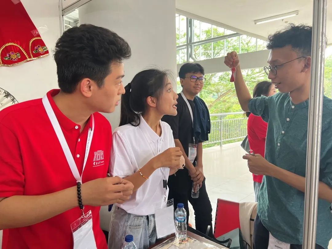 在活动开幕式上,谢欣彤同学与各青年代表团同学协作表演了声乐联唱、器乐合奏、舞蹈串烧等节目。在学术论坛上,谢欣彤同学还以“非艺术专业的同学如何传承和保护传统文化艺术”为题进行了互动交流。在艺术与文化集市中的中国展台,谢欣彤同学向国外青年展示了云南大学书签、明信片、纪念币、云大剪纸画等百年校庆系列文创产品。