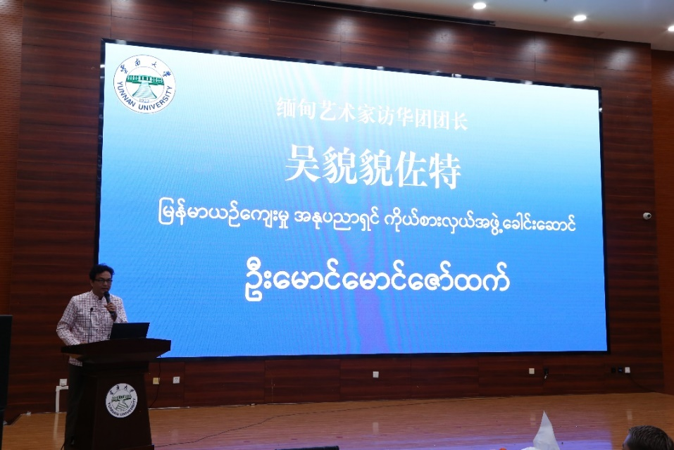 缅甸艺术家访华团团长吴貌貌佐特致辞