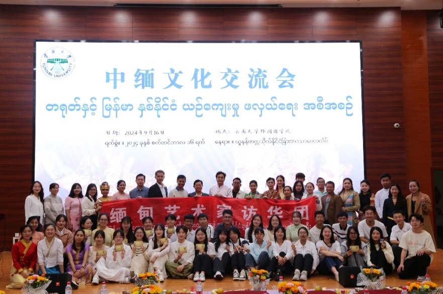 云南大学缅甸语教研室师生及缅甸留学生与缅甸艺术家访华团合影留念