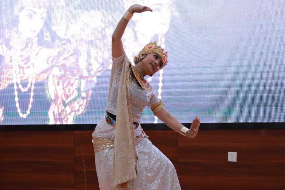 缅甸语及亚非语言文学(缅甸语方向)专业学生与缅甸留学生一起进行缅甸舞蹈表演