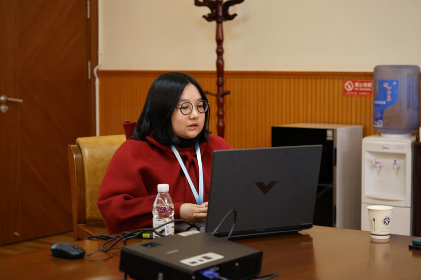 (北京大学外国语学院党委书记李淑静教授线上致辞。)