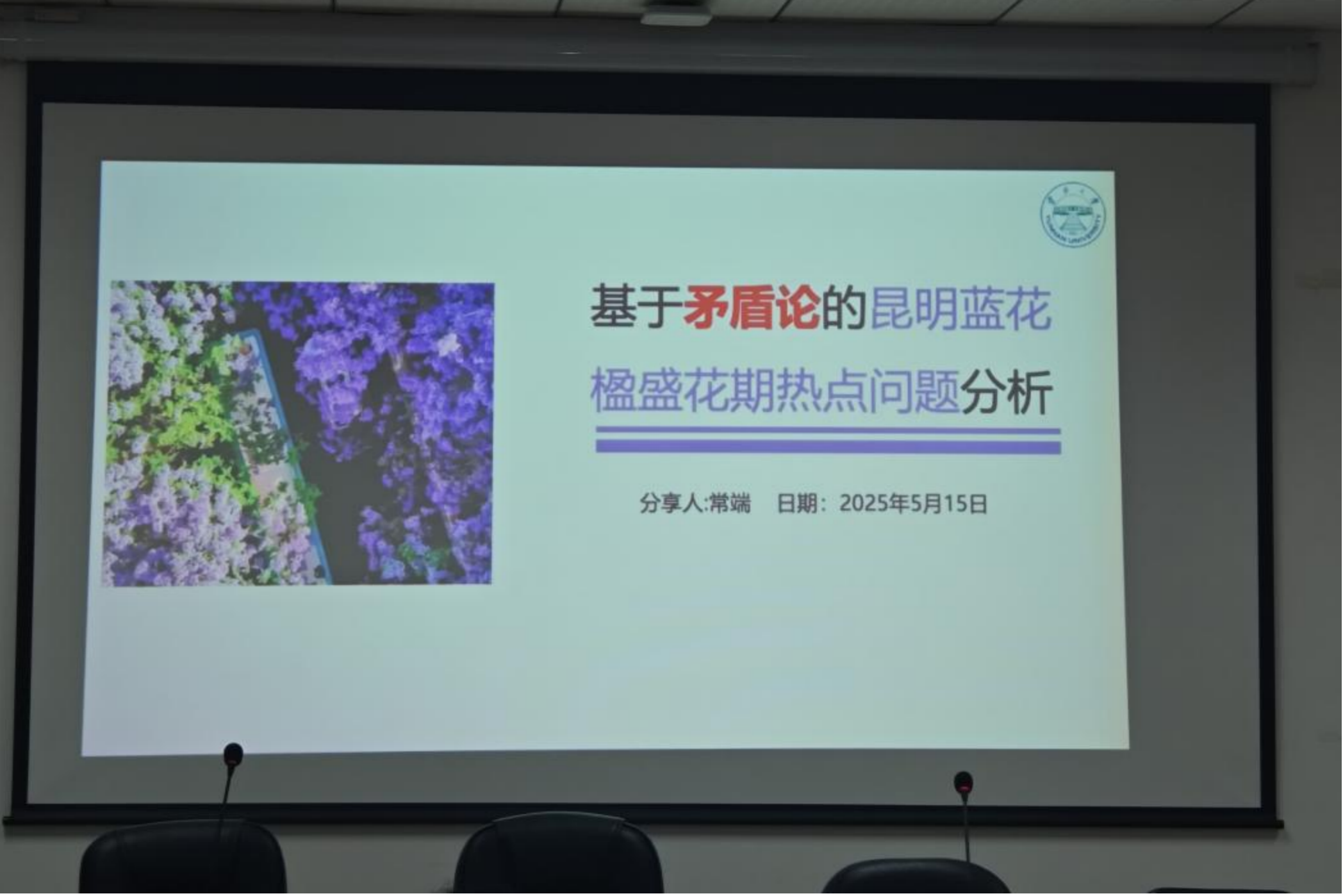 最后,常端同学以“昆明蓝花楹热”为切入点,结合所学内容,分析了城市资源配置与季节性突发流量的不匹配,并提出相应改进策略。