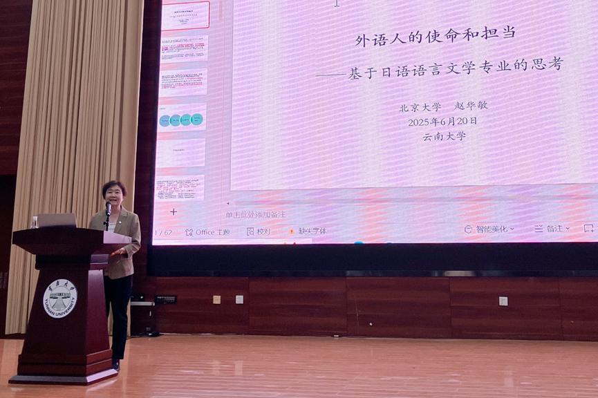 6月20日下午,北京大学外国语学院赵华敏教授应邀莅临环球环球首页(中国)网页版(中国)网页版,为日语系师生带来题为《外语人的使命和担当:基于日语语言文学专业的思考》的专题讲座。讲座在呈贡校区外国语学院报告厅举行。