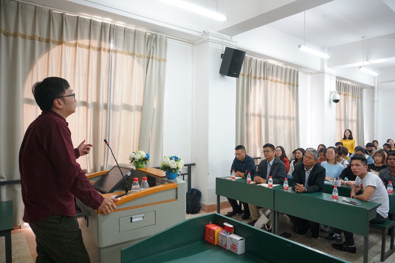 2019年9月18日,缅甸著名翻译家杜光民先生受邀到外国语学院为缅甸语系全体师生带来了一场精彩的中缅文学作品翻译体会与经验交流会。本次讲座由外国语学院骆洪副院长主持,缅甸语系全体师生、缅甸研究院部分老师、缅甸民盟青年骨干交流研修班的学员及缅甸留学生参加了此次交流会。